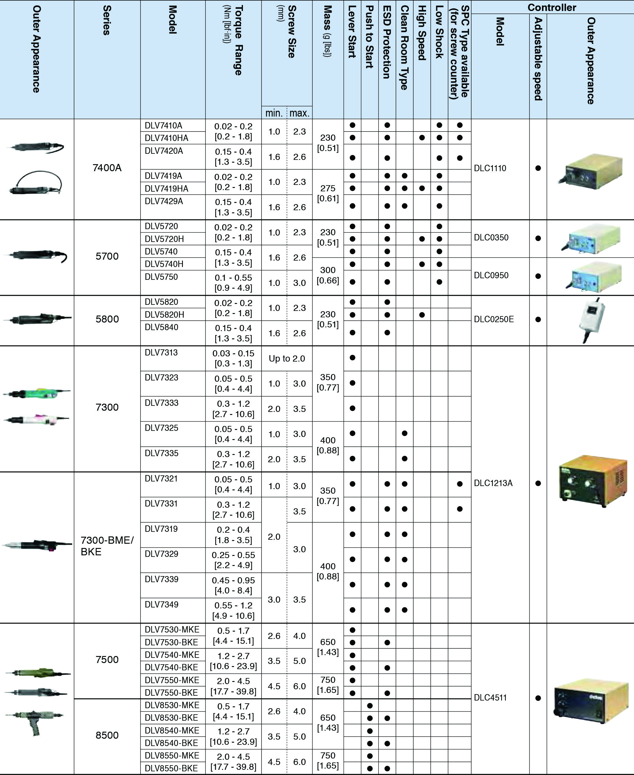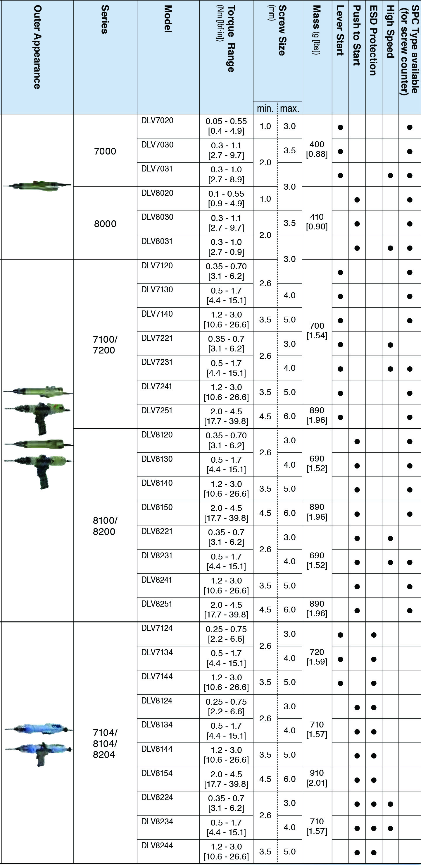 The new "delvo" achieves an accurate and consistent torque with an easily visible torque reach light. The combination of an advanced clutch design and the auto-stop circuitry assures torque accuracy.