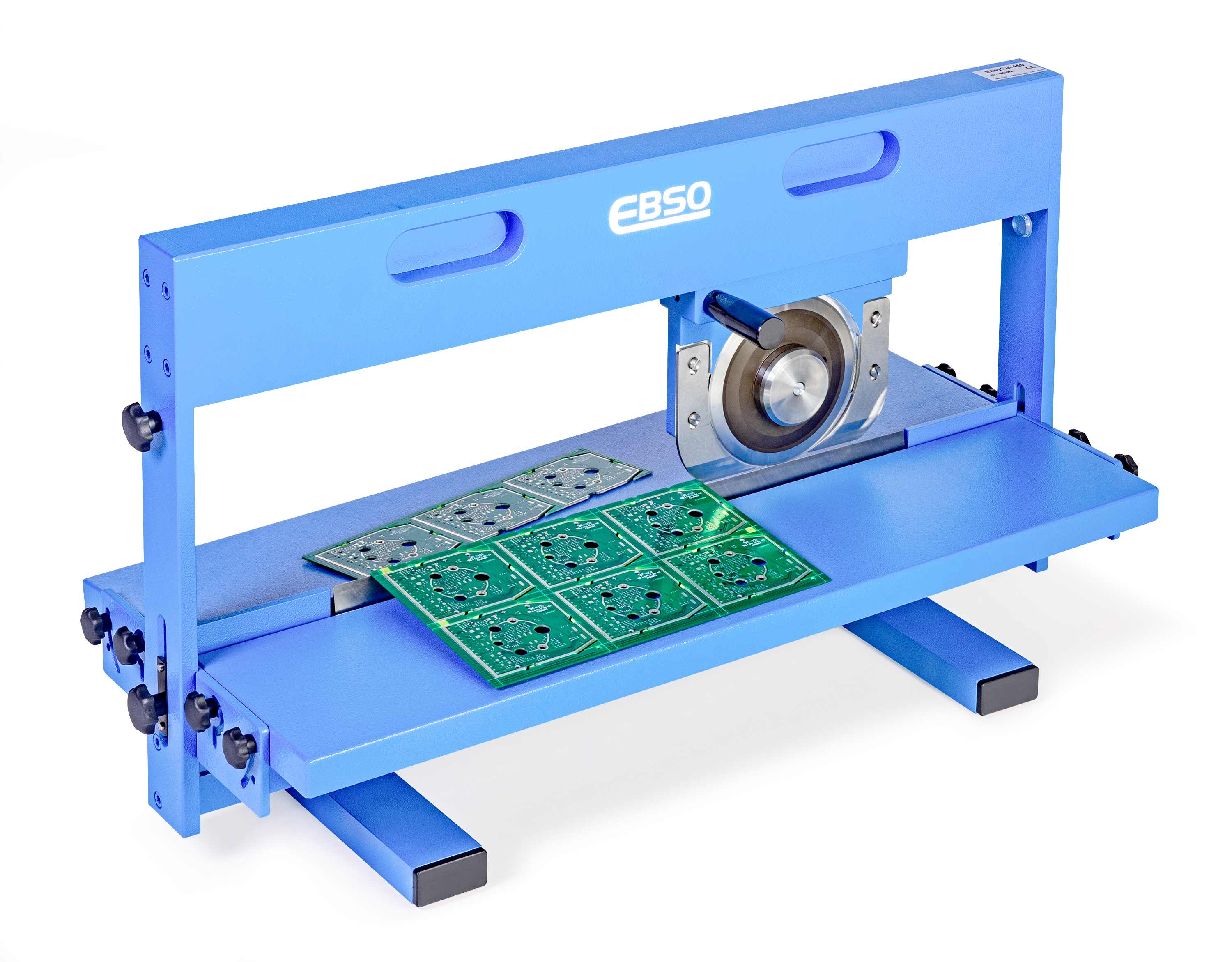 Manual Circular/Linear Blade Depanelizer Both large and small PCB’s can be separated in an economically viable manner by LINEAR BLADE PCB DEPANELIZERS. The PCB is laid onto the linear blade with the edge of the blade located into the scored groove in the PCB. Passing the blade across the PCB will separate it into individual units. The scored grooves can be interrupted by any number of cut-outs. The EasyCut450 shown on the front page is hand operated.