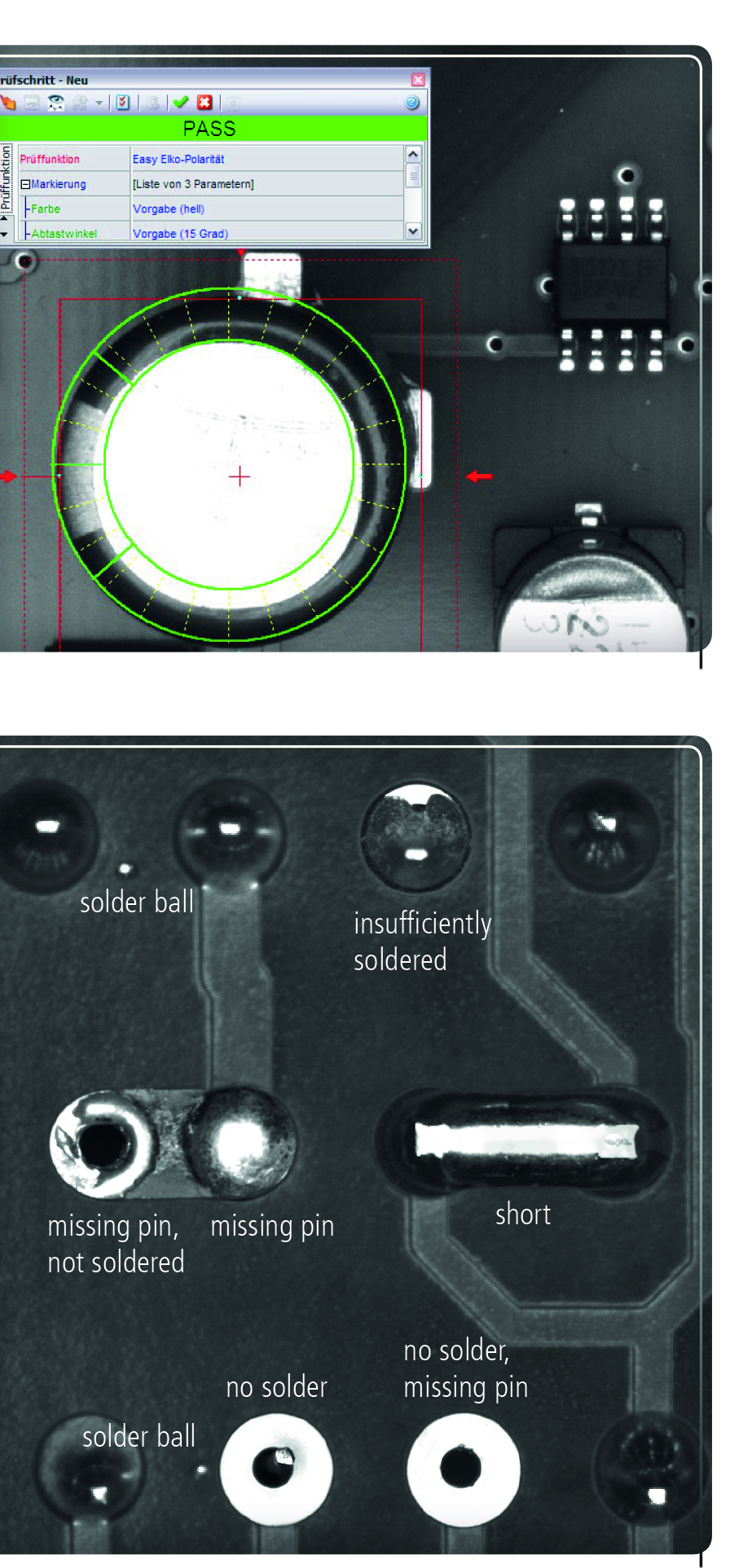 Componenta și lipitura pot fi inspectate din mai multe poziții în linia de producție